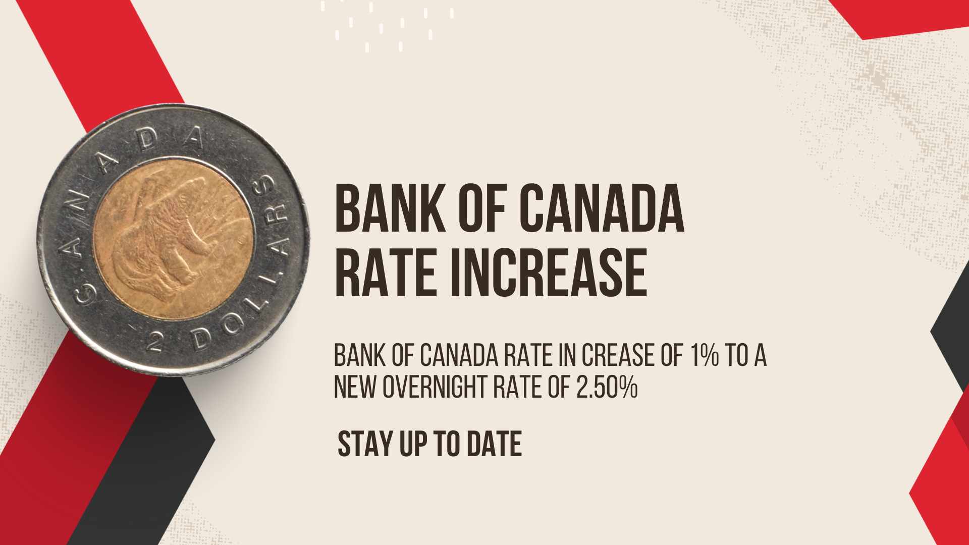 Bank of Canada increases rates by 1.00% to a new overnight rate of 2.50%